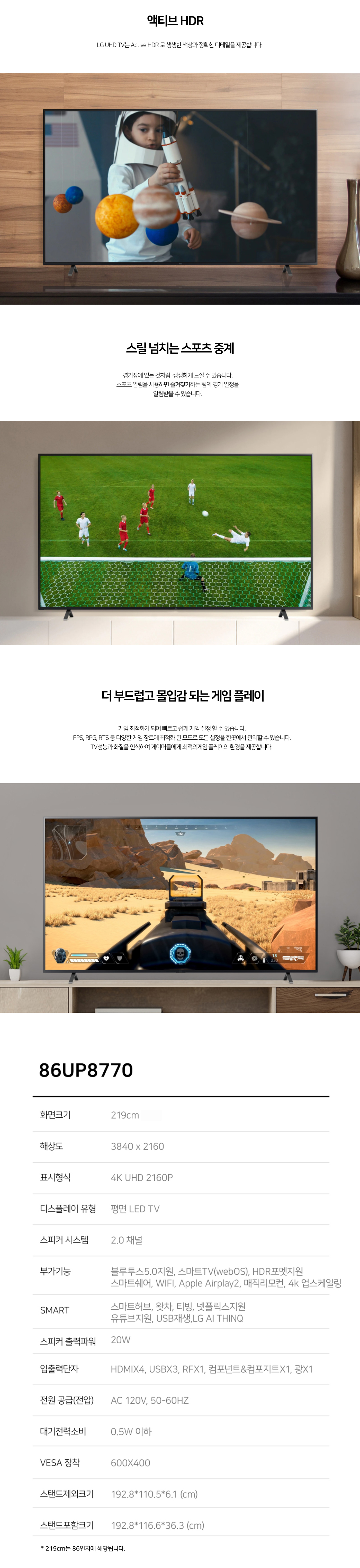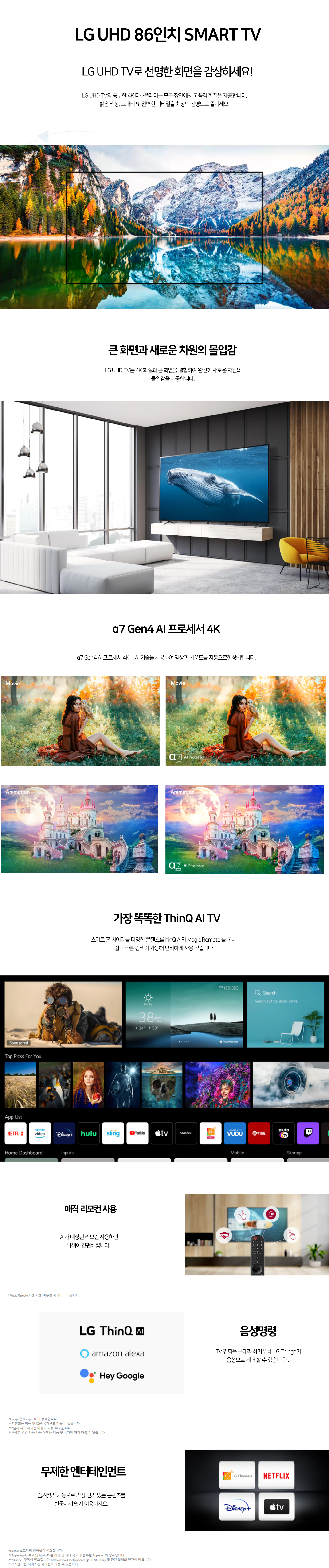 LG전자 86인치 217cm 86UP8000 4K UHD 스마트TV Wifi 넷플릭스 유튜브 매장방문수령