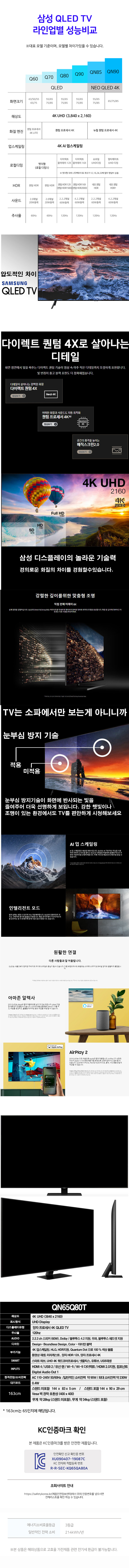 삼성전자 65인치 QLED 65Q80 4K 스마트티비 로컬변경완료 설치배송